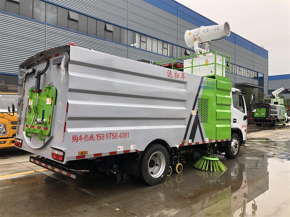 洗掃潔凈度高,該車型齊全的功能解決不同路面環境的作業,一次作業洗掃效率達98%以上,前沖功能、洗掃功能、路沿清洗功能、后噴霧功能、低壓沖洗功能以及采用的吸盤+左右側噴桿結構,路面、溝縫、彎道處、路沿上等處的灰塵、垃圾均能處理干凈,確保環境干凈、整潔。