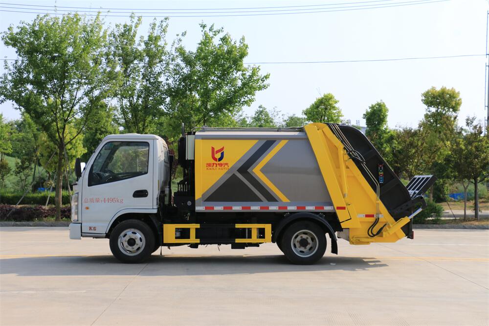 上裝配置:垃圾箱容積:4方,新款平面弧形廂體,廂體材料為武鋼優(yōu)質(zhì)碳鋼,PLC一鍵操作**,手電一體操作模式,兩側(cè)雙電控,帶駕駛室內(nèi)操作,底板支撐加強(qiáng),雙向壓縮,開放式易清潔污水箱。壓縮式垃圾車采用機(jī)電液一體化技術(shù),借助機(jī)、電、液聯(lián)合自動(dòng)**系統(tǒng)、電腦**、手動(dòng)操作系統(tǒng),通過填裝器和推鏟等專用裝置,實(shí)現(xiàn)垃圾倒入、壓碎或壓扁、強(qiáng)力裝填,把垃圾擠入車廂并壓實(shí)和推卸,污水全部進(jìn)入污水廂,解決了垃圾運(yùn)輸過程中的二次污染的問題。壓縮式垃圾車具有自動(dòng)反復(fù)壓縮以及蠕動(dòng)壓縮功能,壓縮比高、密封性好、裝載量大﹑操作方便、環(huán)保性好﹑整車?yán)霉β矢叩葍?yōu)點(diǎn)。作業(yè)自動(dòng)化,垃圾收集方式簡(jiǎn)便、高效。后翻轉(zhuǎn)機(jī)構(gòu)選裝:1、掛塑料桶式翻轉(zhuǎn)機(jī)構(gòu);2、掛鐵桶式翻轉(zhuǎn)機(jī)構(gòu);3、擺臂式翻轉(zhuǎn)機(jī)構(gòu); 4、簸箕斗式翻轉(zhuǎn)機(jī)構(gòu)。