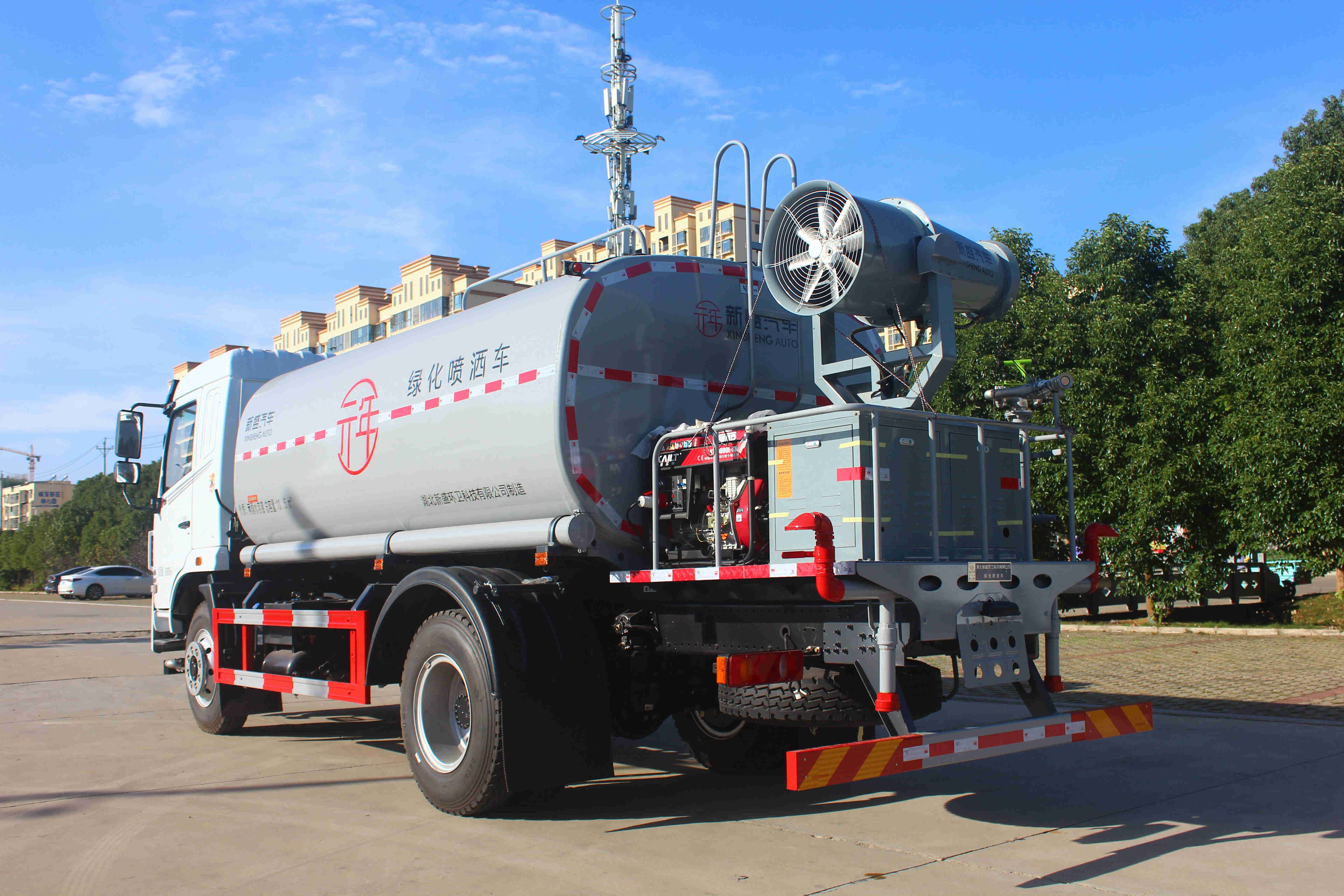 上裝配置:罐體容積,12方左右,罐體采用武鋼優(yōu)質(zhì)板材制作,專用功能為前沖后灑帶側(cè)噴,罐體后部帶工作平臺(tái),平臺(tái)上安裝綠化灑水高炮,配備定制版防凍型灑水泵,泵可以自吸自排,帶自流閥,帶消防接頭,帶過濾裝置。正宗武鋼國(guó)標(biāo)鋼板,假一賠十,定制版油漆,褪色包賠。