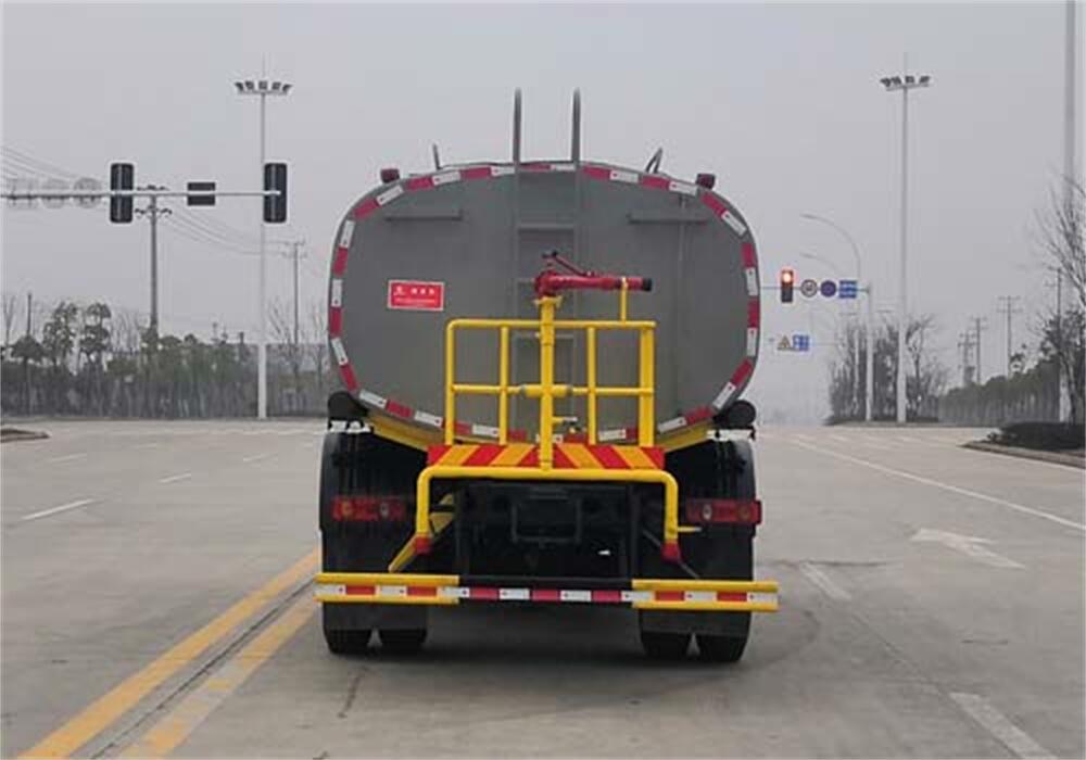 灑水車前裝有鴨形噴嘴或圓頭沖嘴,后面裝有圓柱開灑水噴嘴或蓮蓬頭噴嘴,后部有一工作平臺,裝配有水炮。后部還可裝8個噴嘴(選裝)。