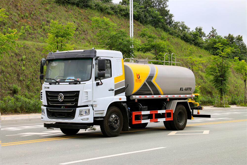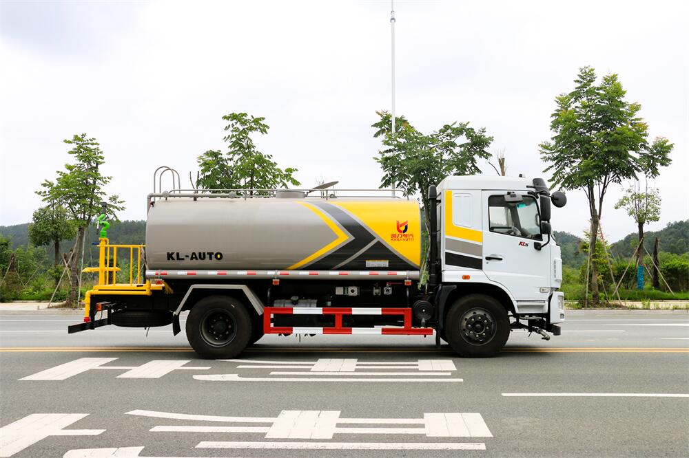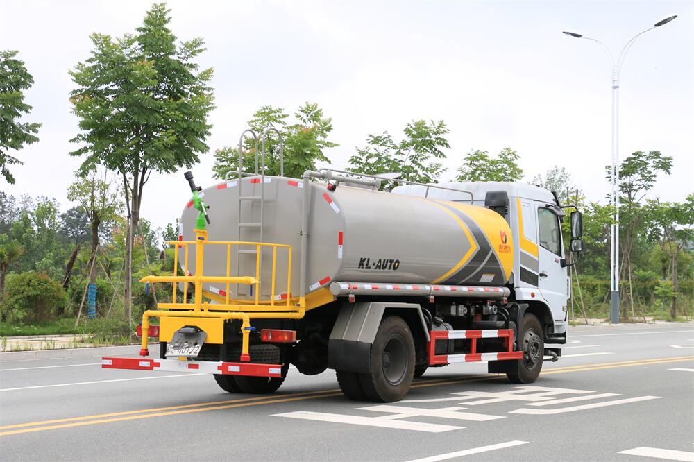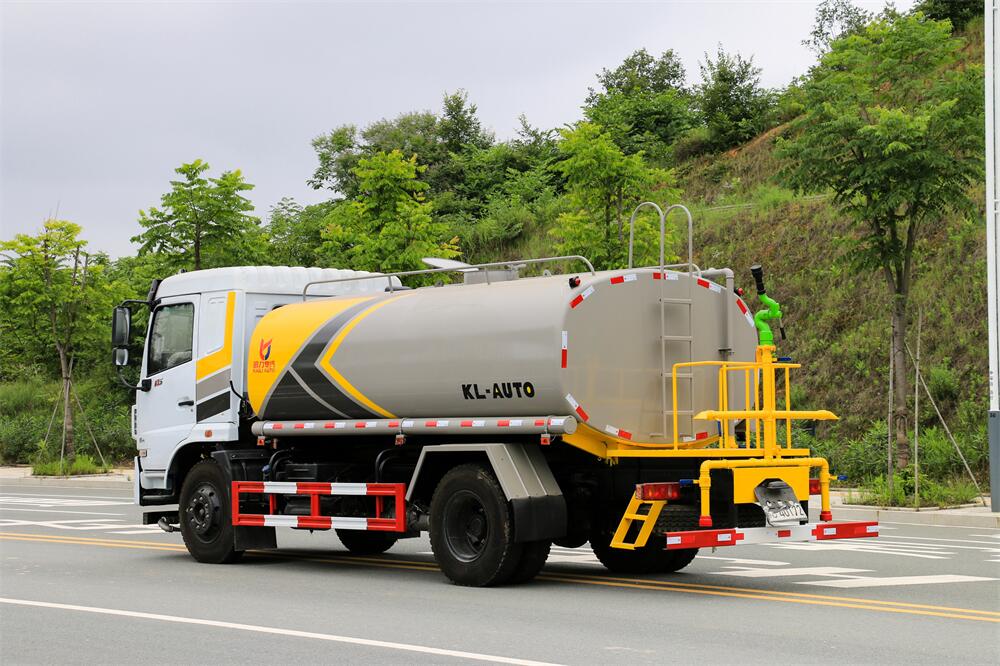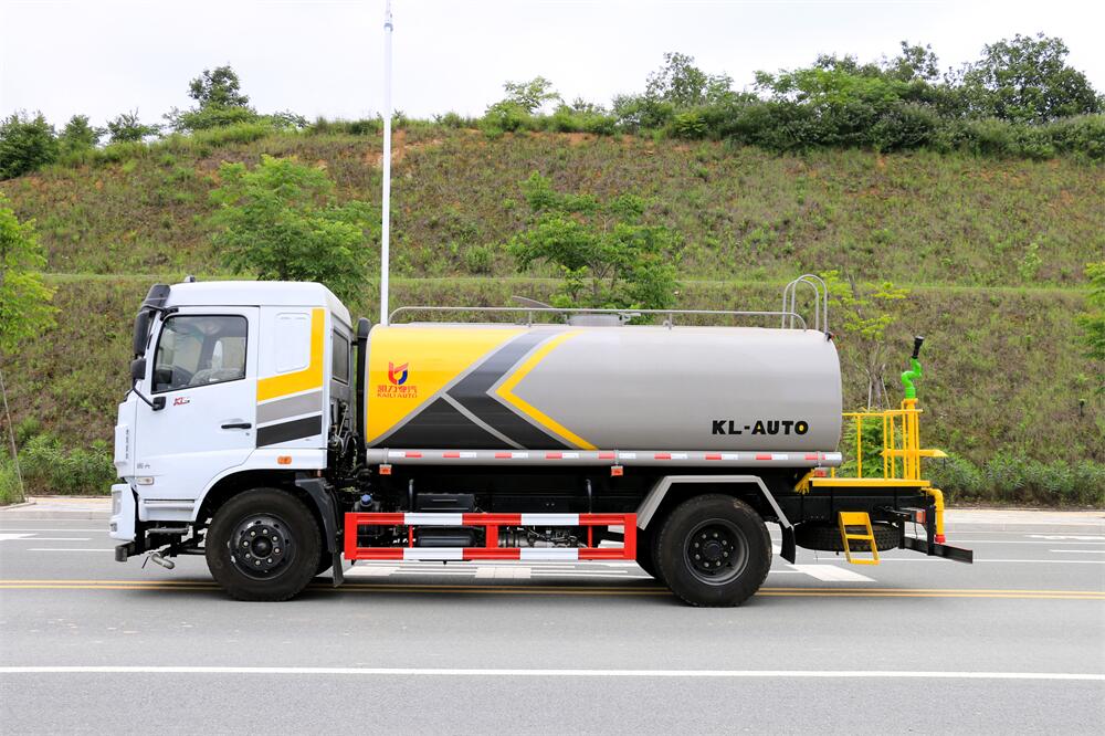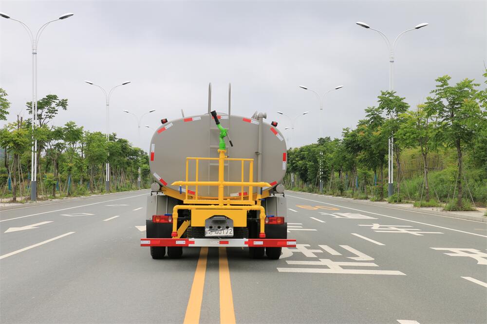 灑水車前裝有鴨形噴嘴或圓頭沖嘴,后面裝有圓柱開灑水噴嘴或蓮蓬頭噴嘴,后部有一工作平臺(tái),裝配有水炮。后部還可裝8個(gè)噴嘴(選裝)。