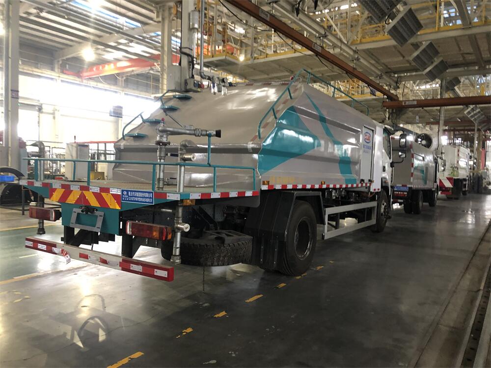 上裝配置:罐體容積為 8立方,選配風(fēng)送式霧炮機(jī)組射程30米、40米、50米、60米、80米、100米、120米霧炮,罐體鋼板為4mm碳鋼Q235材質(zhì),罐內(nèi)隔板具有防波作用,以減輕汽車行駛時罐體液體沖擊,罐體及整車外形尺寸按照公告。帶大功率專用灑水泵,泵可自吸自排,整車前沖、后灑、側(cè)噴、帶65消防接口,后平臺配CLW-50、CLW-60、CLW-80、CLW-100、CLW-120型風(fēng)送式霧炮機(jī)組;罐體前封頭配大功率柴油發(fā)電機(jī)組;前封頭帶水位計,后平臺主管路帶1寸澆花接口,后爬梯。帶兩根輸水管及陰陽端。罐體顏色:銀/灰/綠,罐體兩側(cè)噴“多功能抑塵車”字樣,貼反光標(biāo)示。