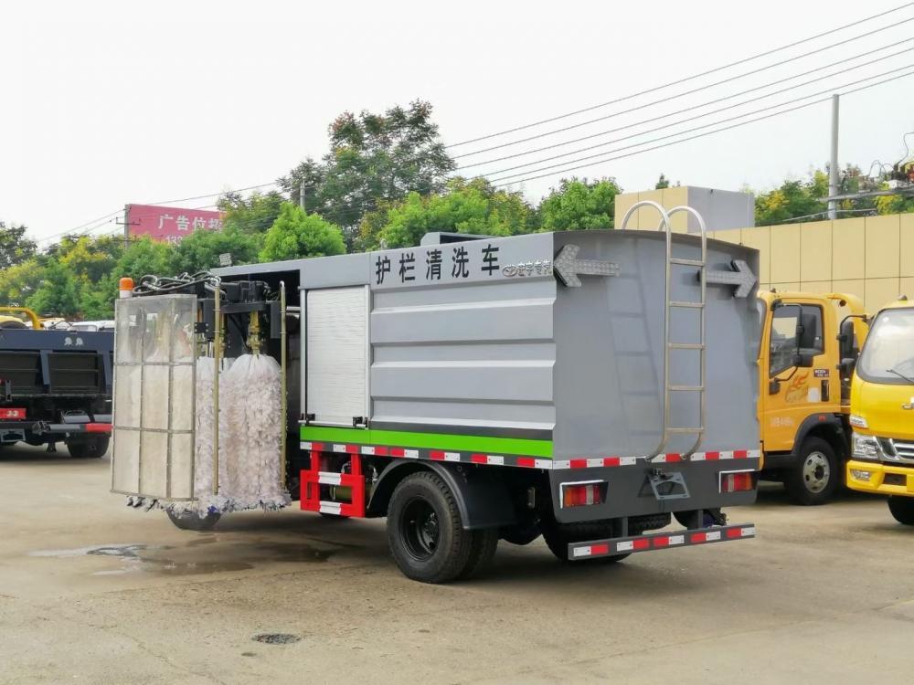 是清洗城市及高速護欄的專用車輛。城市道路護欄清洗車用機械作業取代人工作業,速度,潔凈度有優勢,大大減輕環衛工人的勞動強度,提高清洗效率,使得點線道路養護變為立體養護,使得的整個道路養護沒有遺漏。