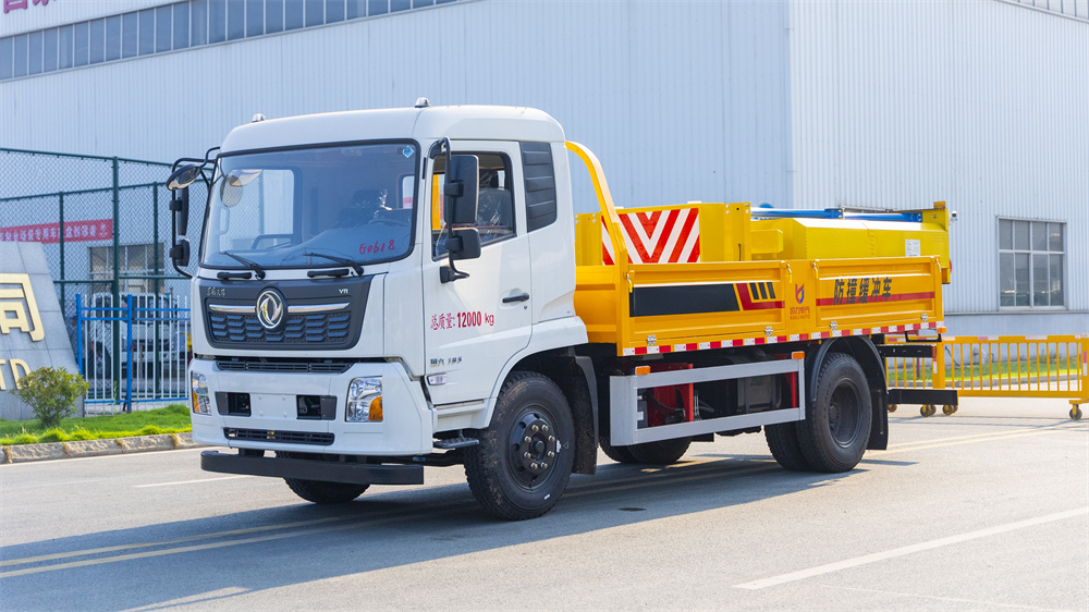 上裝配置:護箱:采用Q235國標邊3mm底板花紋板3mm厚,箱體后部防撞包采用國內知名公司,高性能液壓系統,可實現快速舉升和落下操作,方便設備運輸轉場,一鍵啟動功能,配有10個定制**示燈,LED**示顯示屏。