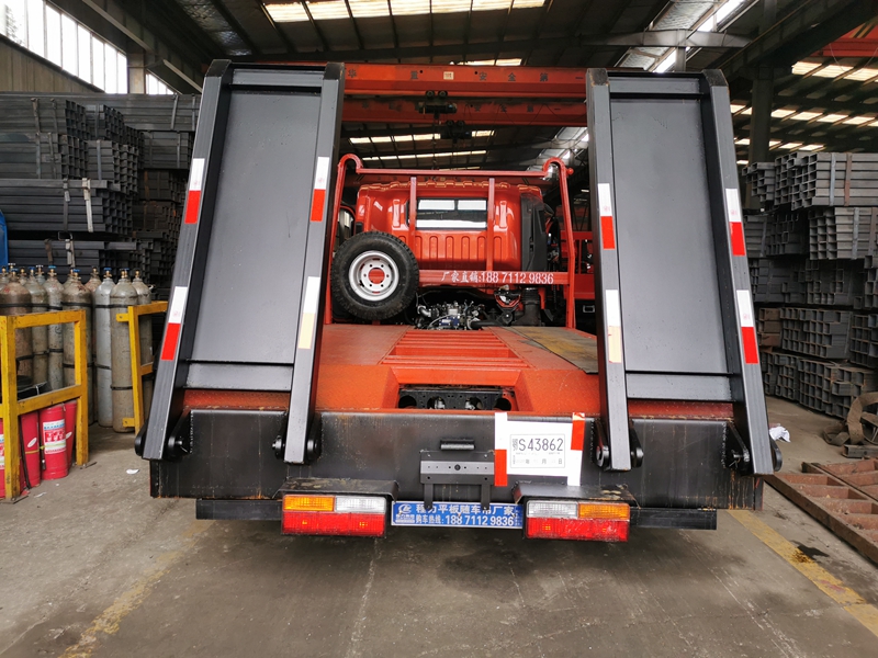 上裝采用五毫米花紋鋼板,100*100方鋼做橫梁,電動卷揚,簡易爬梯,可拉8噸以下挖機(jī)。