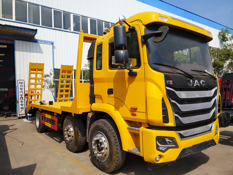 其他江淮k5小三軸平板拖車采用格爾發高頂駕駛室,玉柴220馬力,法士特8檔變速箱,10.00R20 18PR鋼絲胎,280×80×8mm車架,5噸前橋、10噸后橋、電動門窗,原廠空調、行車記錄儀、ABS,氣囊座椅、電動翻轉等,可以加裝液壓折疊爬梯!